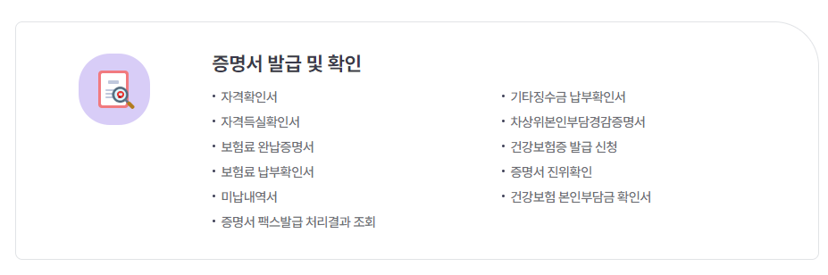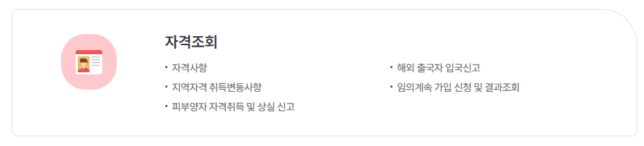 - 보험 자격 조회 및 보험료 납부, 고지서 관리 서비스 제공.