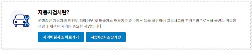 - 사이버검사소 선택: "자동차검사 소개" 페이지에서 사이버검사소를 클릭합니다. 사이버검사소에서는 차량의 검사 내역과 유효기간을 손쉽게 조회할 수 있는 메뉴를 제공합니다.