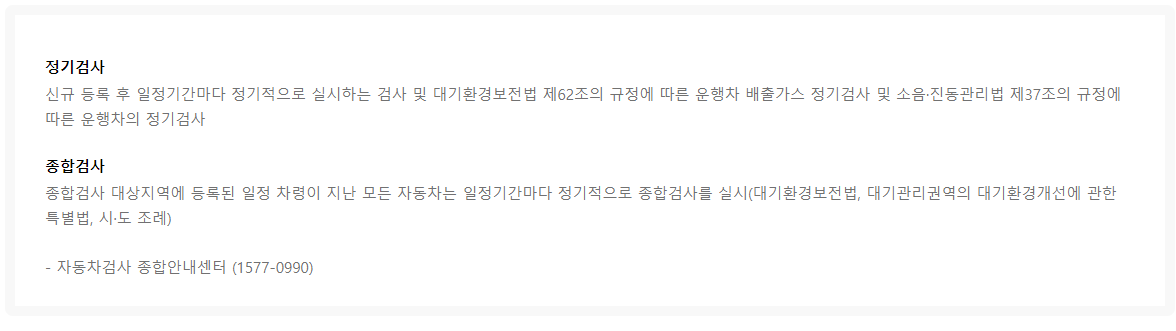 - 정기검사와 종합검사 두 가지 종류의 자동차검사