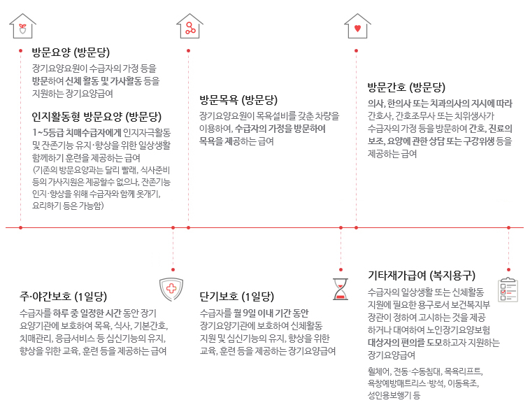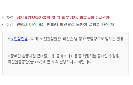 - 장기요양보험가입자 및 그 피부양자, 또는 의료급여수급권자