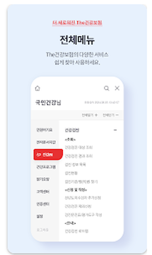 The건강보험 서비스는 공단 홈페이지내의 주요 콘텐츠를 국민들이 모바일에서 쉽고 빠르게 노인 장기요양등급 신청방법등 많은 정보를 접할 수 있도록 구성하였습니다.