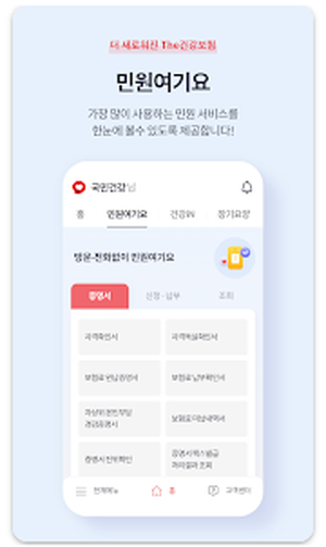 더 건강한 국민의 삶을 위해 모바일로 편리하게 민원서비스(노인 장기요양등급 신청방법)를 이용하세요. 1. 민원여기요 - 자격득실확인서, 보험료 납부확인서 등 증명서 5종을 제출기관에 팩스로 보낼 수 있습니다. - 보험