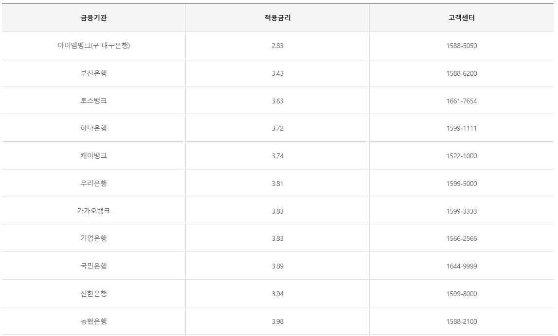 예를 들어, 우리은행의 경우 3.83%, 국민은행은 3.81%, 신한은행은 3.74%의 금리를 제시하고 있습니다. 이런 차이는 작아 보일 수 있지만, 수천만 원의 대출을 받는다고 생각하면 꽤 큰 금액 차이로 이어질 수 있죠.