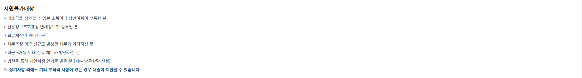 셋째, 과다한 재산을 보유하고 있거나, 채무조정 이후 새로운 채무가 많이 발생한 경우에도 대출이 어려울 수 있습니다.