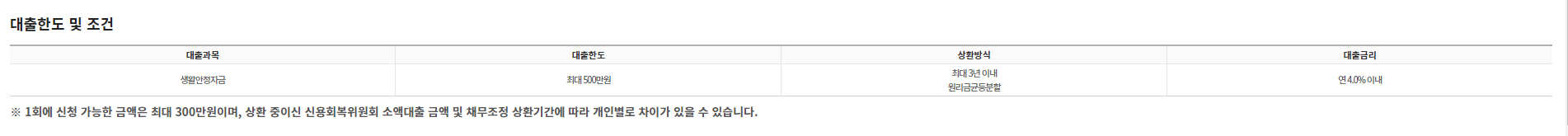 신용회복위원회 소액대출의 조건은 여러분의 상황을 고려하여 설계되었습니다. 최대 500만원까지 대출받을 수 있으며, 상환 기간은 최대 3년입니다. 이자율도 연 4.0% 이내로 매우 합리적이에요. 마치 친구에게 돈을 빌리는 것처럼 부담 없는 조건이죠.