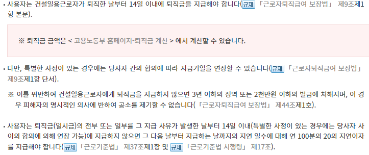 일용직 퇴직금 지급규정